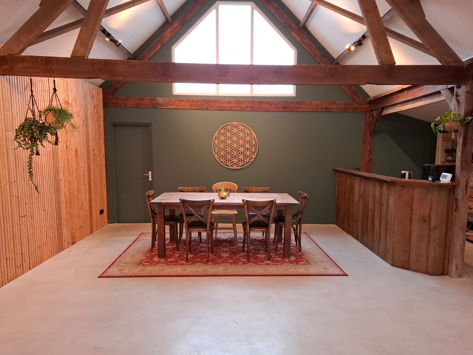 Deze mooie plek is ideaal om met een kleine groep een fijne sessie te volgen, zoals een yogales of ademsessie. De ruimte is gezellig, warm en voorzien van alle facaliteiten.